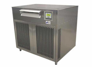 Льдогенераторы чешуйчатого льда комплектуются компрессорно-конденсаторными агрегатами, терморегулирующей аппаратурой и оснащены микропроцессорным пультом управления (ПУ), обеспечивающим полную автоматизацию работы льдогенератора. Корпус льдогенератора выполнен из высоколегированной нержавеющей стали.